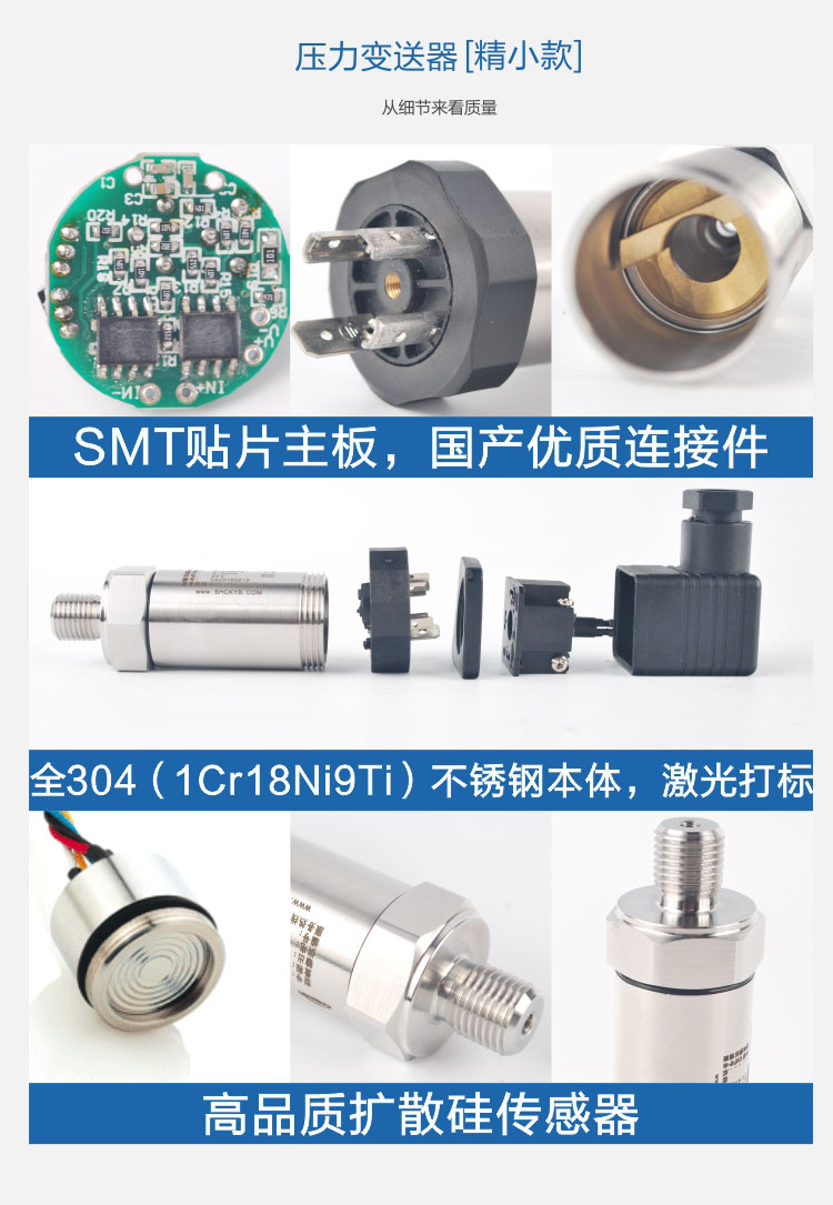 WP40系列精巧型壓力變送器靈敏度高、精度高、抗過(guò)載能力強(qiáng)。采用進(jìn)口傳感器制造,傳感器和放大電路高度集成;采全體不銹鋼為一體,電路零點(diǎn)和增益無(wú)須調(diào)整;抗干擾能力強(qiáng),耐酸堿,長(zhǎng)期穩(wěn)定可靠。