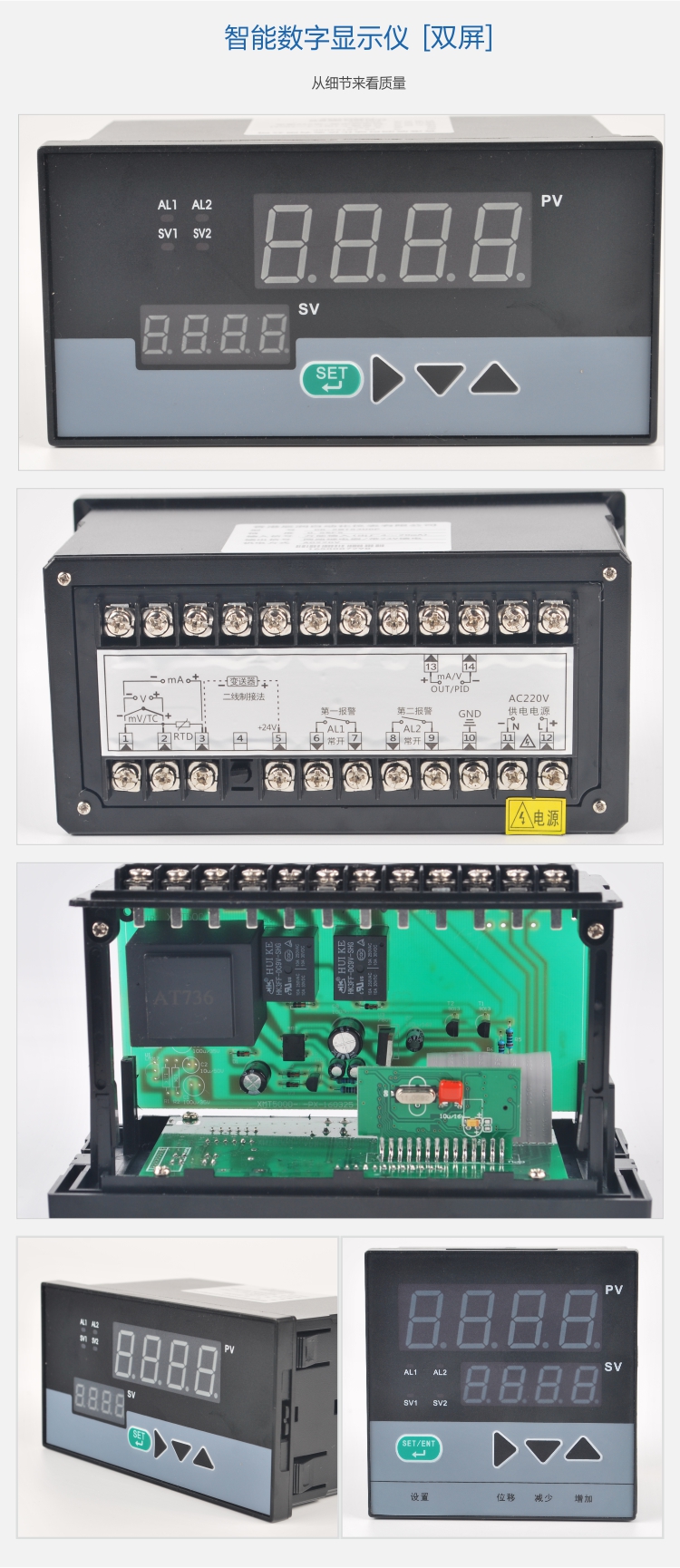 產品簡介:智能數字/光柱顯示控制儀,采用先進的微處理器進行智能控制,適用于溫度、濕度、壓力、液位、瞬時流量、速度等多種物理量檢測信號的顯示及控制,并能對各種非線性輸入信號進行高精度的線性校正。