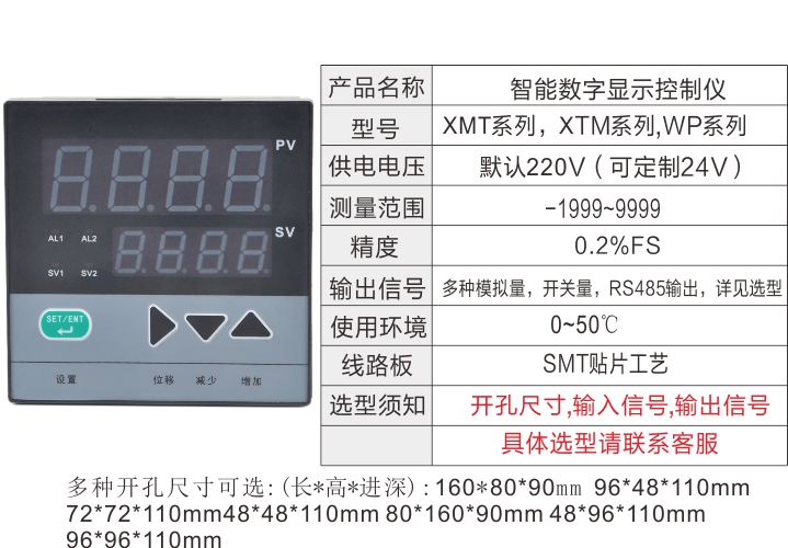 XMT系列智能數字顯示儀 萬能信號輸入 4-20mA 上下限控制
